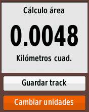 When stopping the measurement, it will indicate the value obtained from the area with a series of buttons to change the measurement units. It is important to mention that, if the final point of the area measurement does not coincide with the initial one, the device will join them with a straight line to close the polygon and make the calculation.